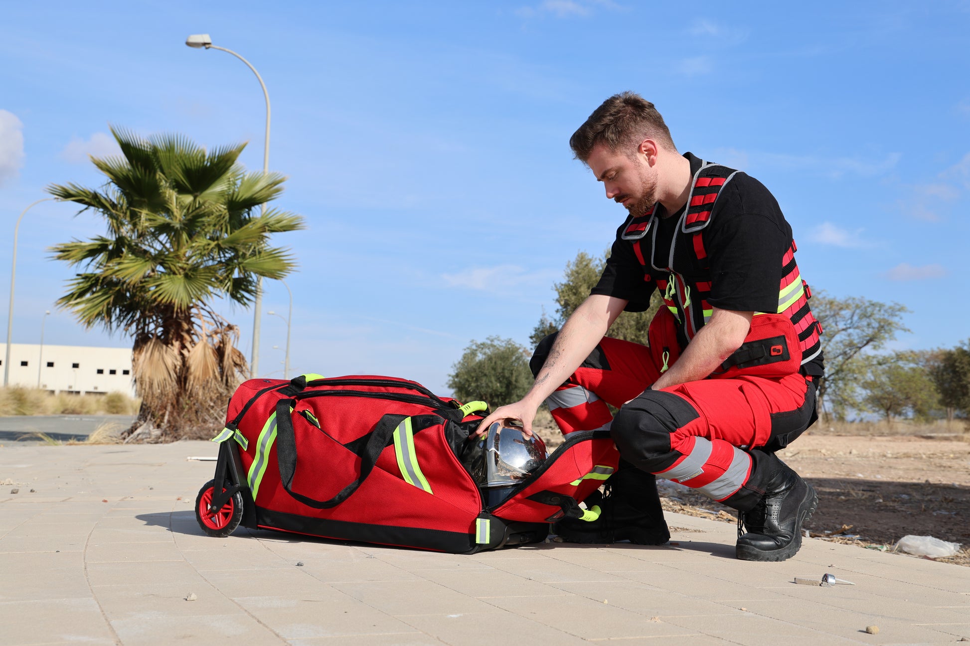 The bag is highly durable thanks to features including all-terrain wheels, resilient end plate, rigid base with protective rails and rugged zips. The abundant reflective trim ensure compartments are easily to access, even in low light levels or while wearing protective gear. Options for personalisation, including the external display window for identity cards mean that there is no confusion even when multiple members of a team are using the same model.