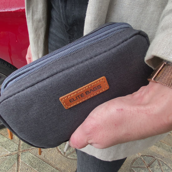 - Elegant pouch with different compartments and elastic bands to organize the diabetic’s kit.