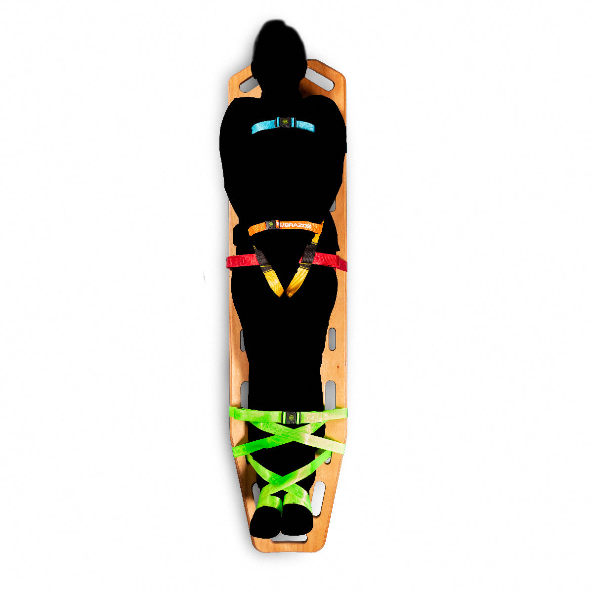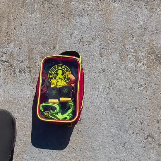 The Octopus Rescue System is a safety strapping system that allows any subject to be efficiently and safely immobilised on a spinal board. It is designed for maximum adjustability, preventing both horizontal and vertical slippage during evacuation or rescue. Each strap is colour coded and each one identifies the function and placement of the subject on the spinal board. The Elite Bags Octopus Rescue System includes: