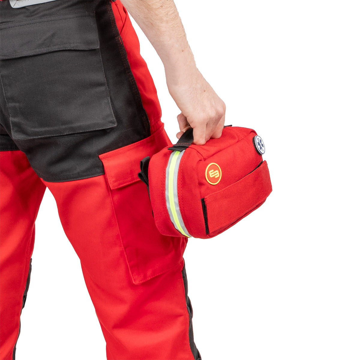This portable kit is the ideal solution for handling emergencies during outdoor activities or unexpected situations. Made of durable polyester, it features a reflective zipper for easy location in low-light conditions, luminescent cord pullers, and two additional loops for quick closure. Additionally, it includes a large Velcro area for customization and a removable patch with the Star of Life, available in both human and canine versions.