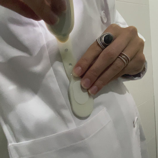 Its magnetic fixing system allows coupling both on the user’s clothing and inside the medical cases in order to obtain lighting during health interventions.